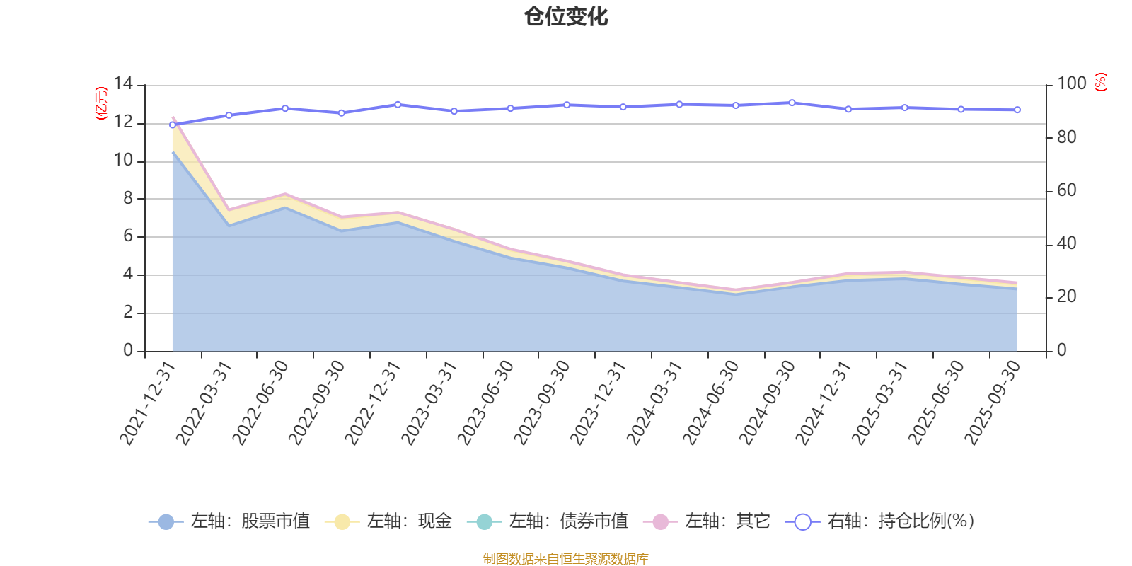 据定期报告数据统计,近三年平均股票仓位为91.7%,同类平均为85.66%。2024年三季度末基金达到93.33%的最高仓位,2021年末最低,为85%。