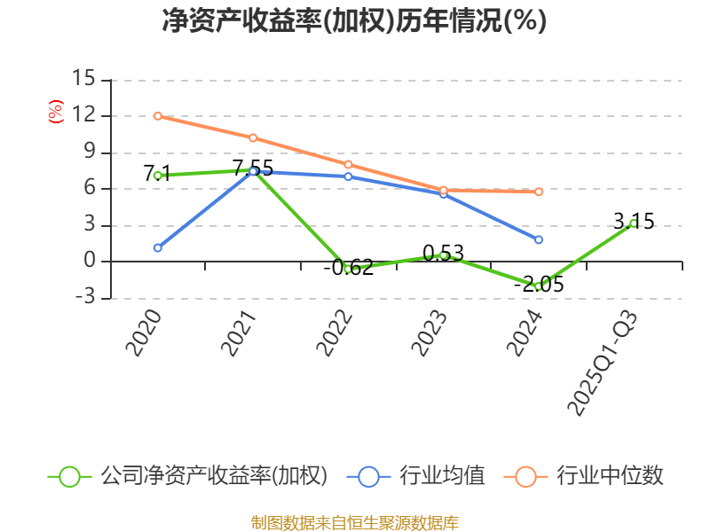 盈利能力方面, 2025年前三季度公司加权平均净资产收益率为3.15%,同比上升1.82个百分点。公司2025年前三季度投入资本回报率为1.75%,较上年同期上升0.67个百分点。