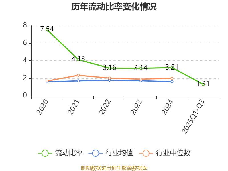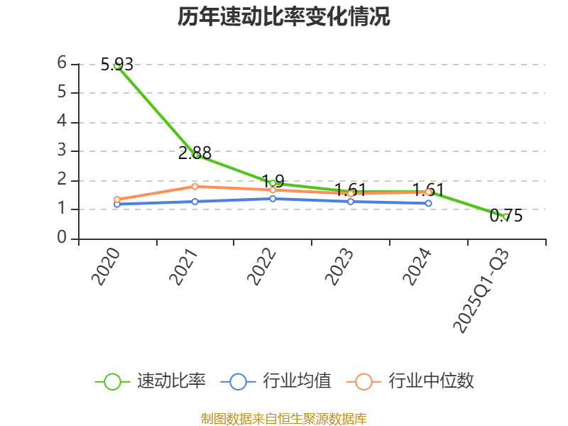 2025年前三季度,公司流动比率为1.31,速动比率为0.75。