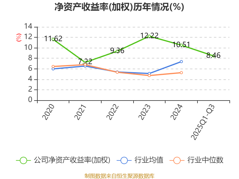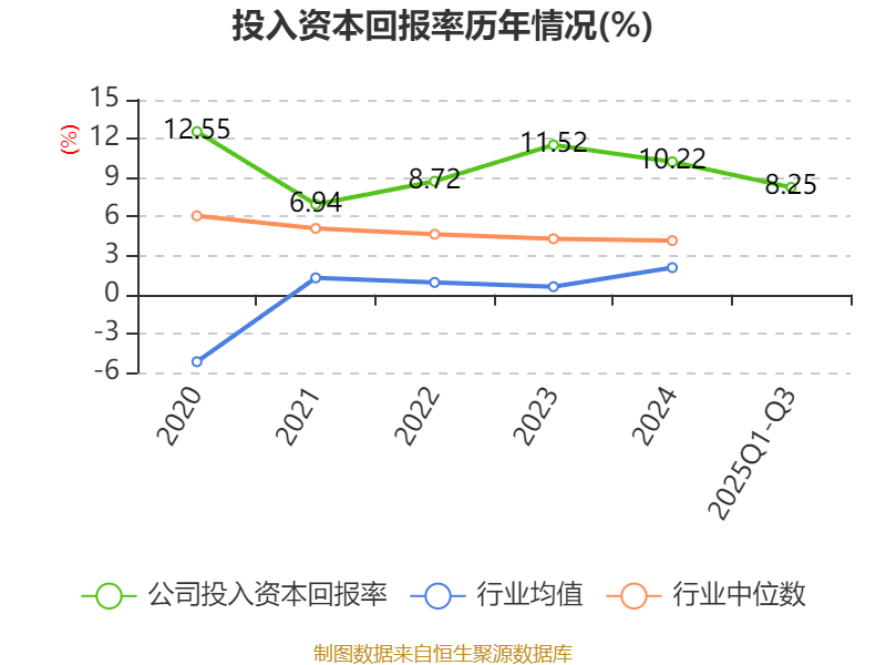 盈利能力方面, 2025年前三季度公司加权平均净资产收益率为8.46%,同比下降0.09个百分点。公司2025年前三季度投入资本回报率为8.25%,较上年同期上升0.07个百分点。