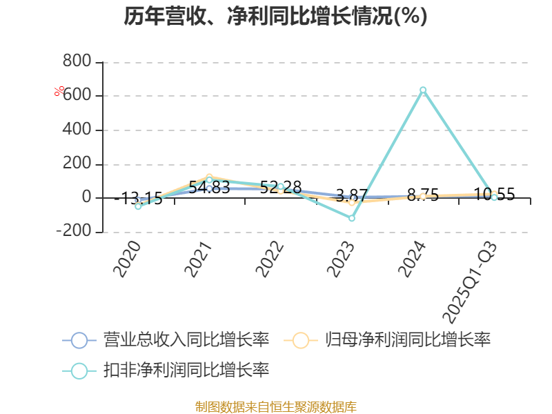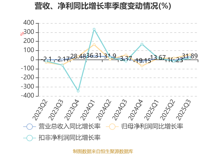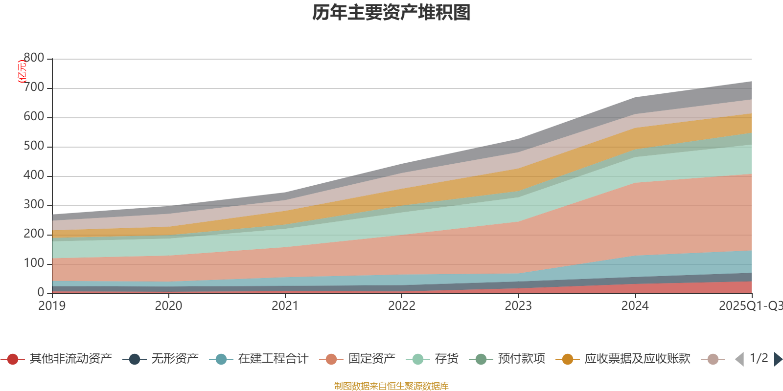 资产重大变化方面,截至2025年三季度末,公司应收票据及应收账款较上年末减少9.27%,占公司总资产比重下降1.77个百分点;预付款项较上年末增加53.34%,占公司总资产比重上升1.63个百分点;其他非流动金融资产较上年末减少84.69%,占公司总资产比重下降1.05个百分点;固定资产较上年末增加5.14%,占公司总资产比重下降1.05个百分点。