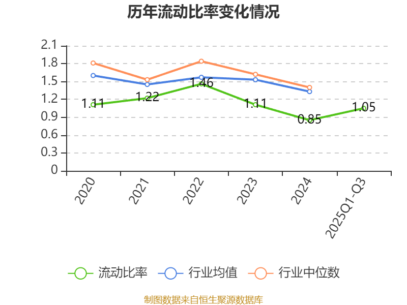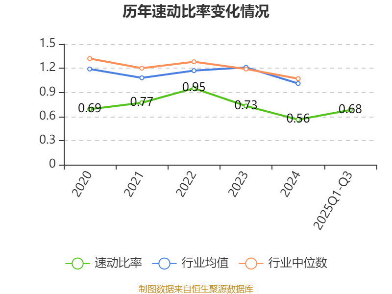 2025年前三季度,公司流动比率为1.05,速动比率为0.68。