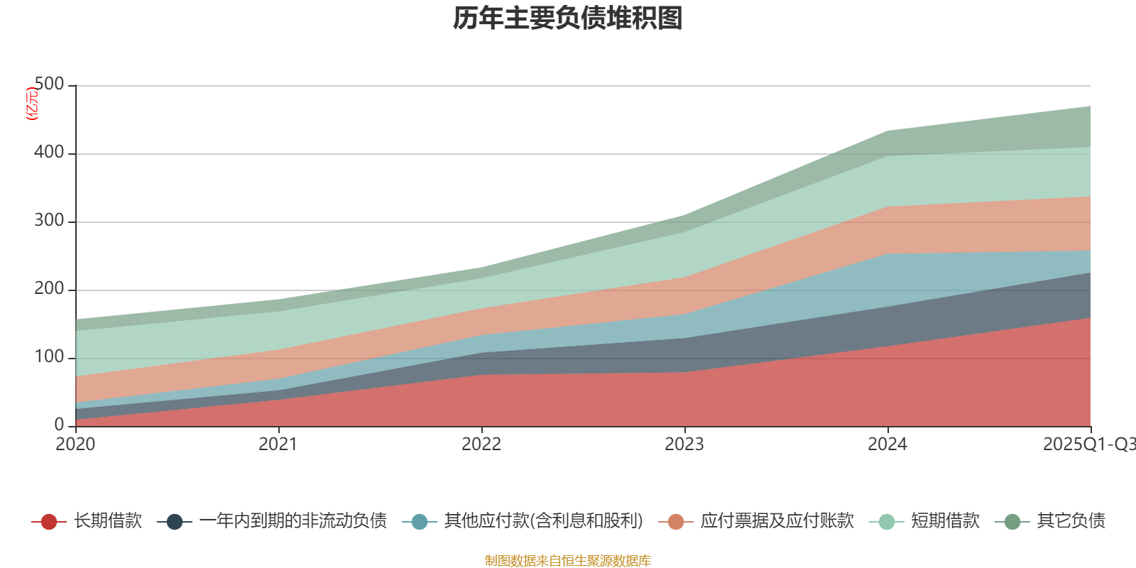 负债重大变化方面,截至2025年三季度末,公司其他应付款(含利息和股利)较上年末减少58.52%,占公司总资产比重下降7.16个百分点;长期借款较上年末增加35.62%,占公司总资产比重上升4.44个百分点;长期应付款合计较上年末增加266.58%,占公司总资产比重上升2.09个百分点;其他非流动负债占公司总资产的1.9%,上年末为0。