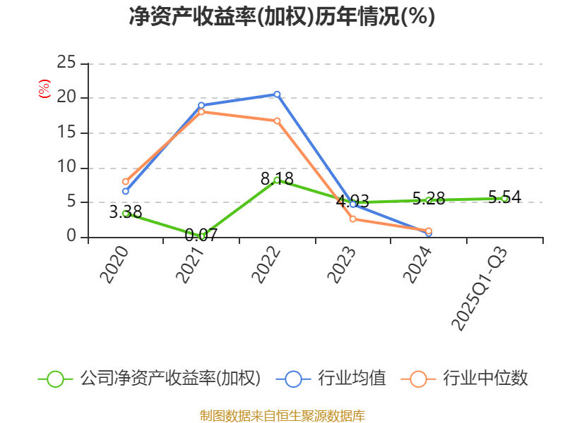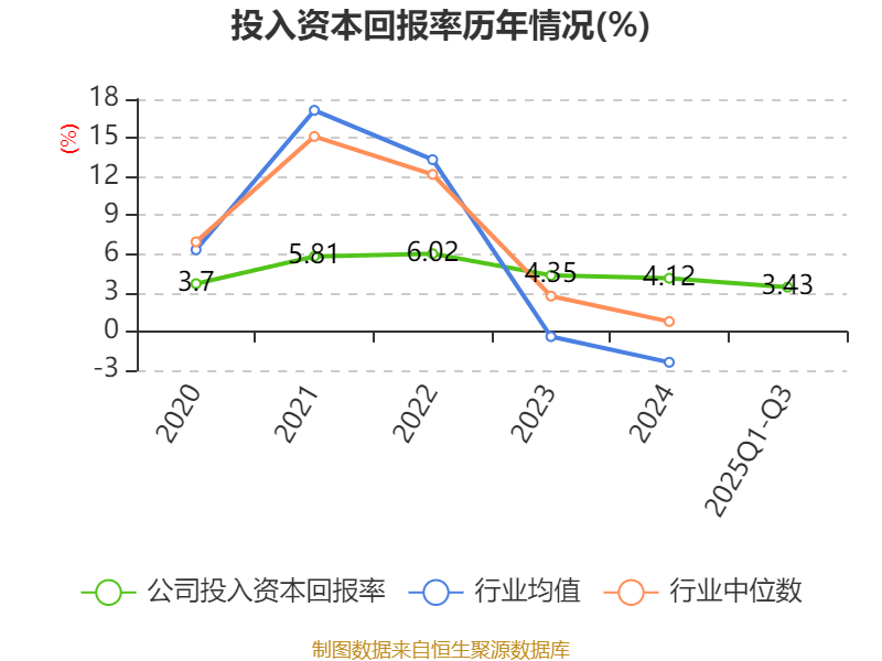 盈利能力方面, 2025年前三季度公司加权平均净资产收益率为5.54%,同比上升0.87个百分点。公司2025年前三季度投入资本回报率为3.43%,较上年同期上升0.16个百分点。