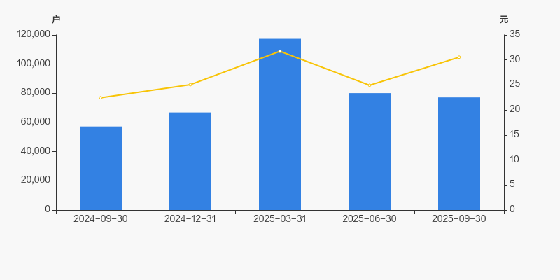 2024年9月30日至今,公司股东户数显著增长,区间涨幅为34.77%。2024年9月30日至2025年9月30日区间股价上涨36.12%。