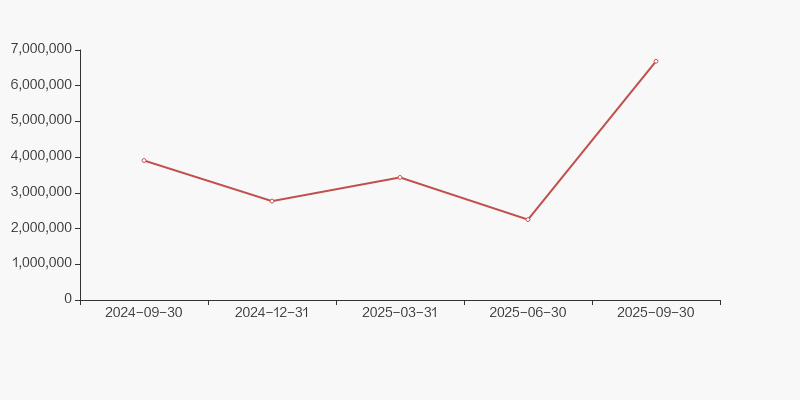 截至2025年9月30日,公司最新总股本为3.84亿股,其中流通股本为3.83亿股。户均持有流通股数量由上期的4780股上升至4961股,户均流通市值15.16万元。