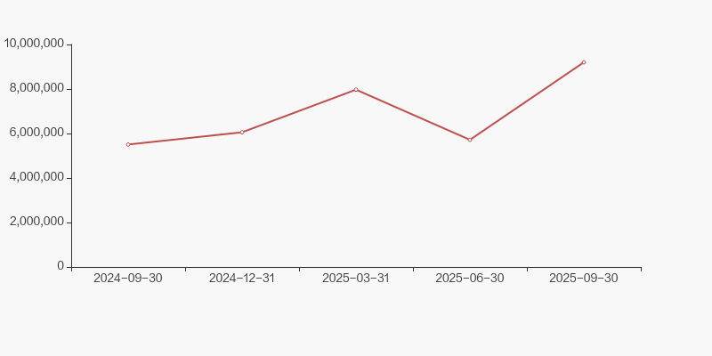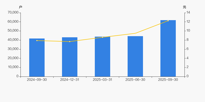 自2024年9月30日以来,公司股东户数连续4期上涨,截至目前增幅为48.30%。2024年9月30日至2025年9月30日区间股价上涨55.19%。