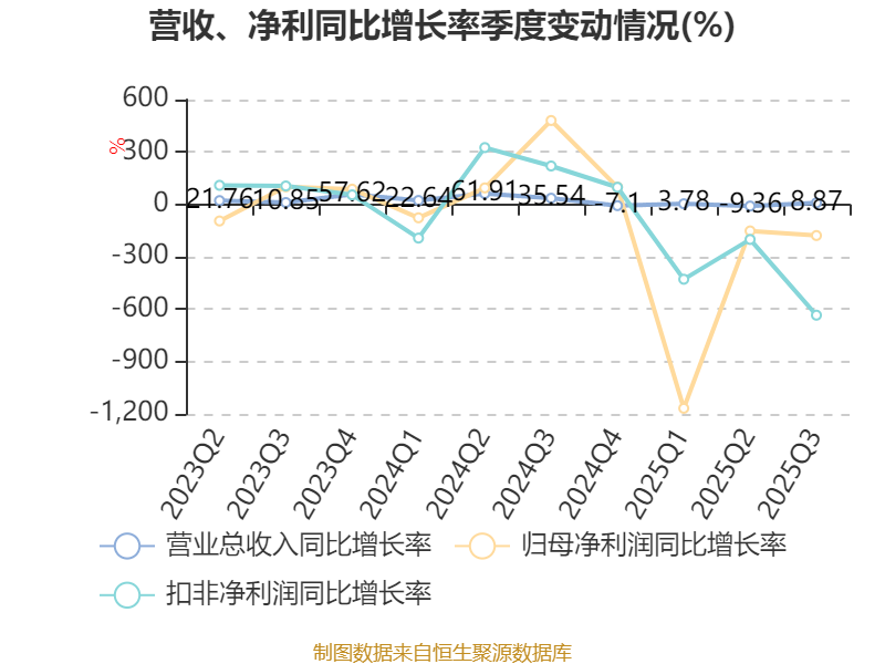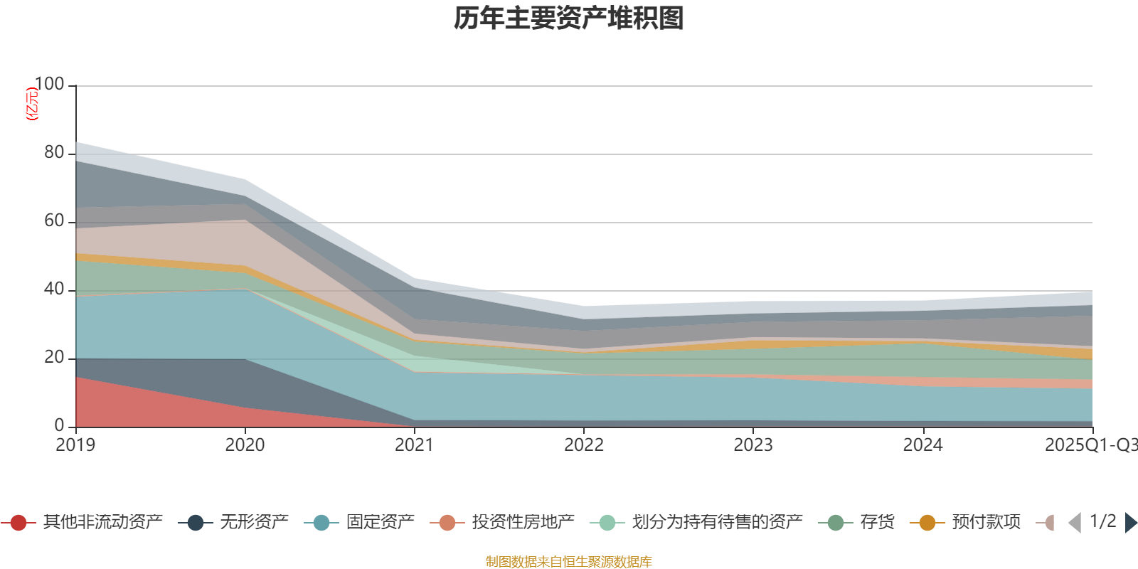 资产重大变化方面,截至2025年三季度末,公司存货较上年末减少41.8%,占公司总资产比重下降12.17个百分点;应收票据及应收账款较上年末增加66.87%,占公司总资产比重上升8.06个百分点;预付款项较上年末增加391.6%,占公司总资产比重上升6.26个百分点;固定资产较上年末减少5.79%,占公司总资产比重下降3.28个百分点。