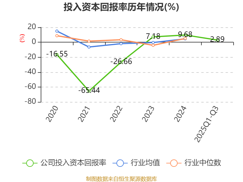 盈利能力方面, 2025年前三季度公司加权平均净资产收益率为-3.41%,同比下降6.69个百分点。公司2025年前三季度投入资本回报率为2.89%,较上年同期下降4.39个百分点。