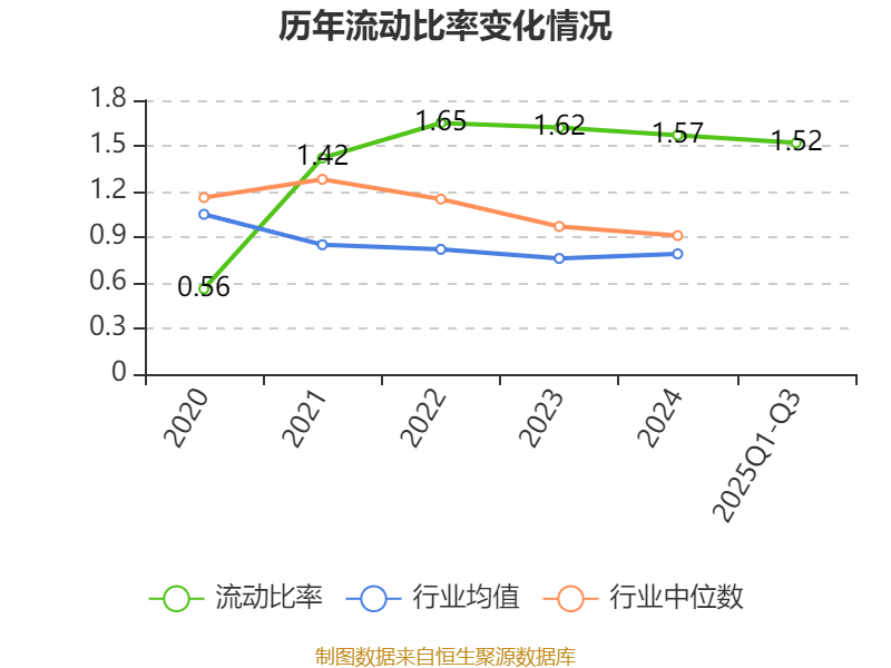 2025年前三季度,公司流动比率为1.52,速动比率为1.14。