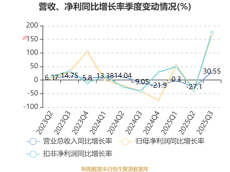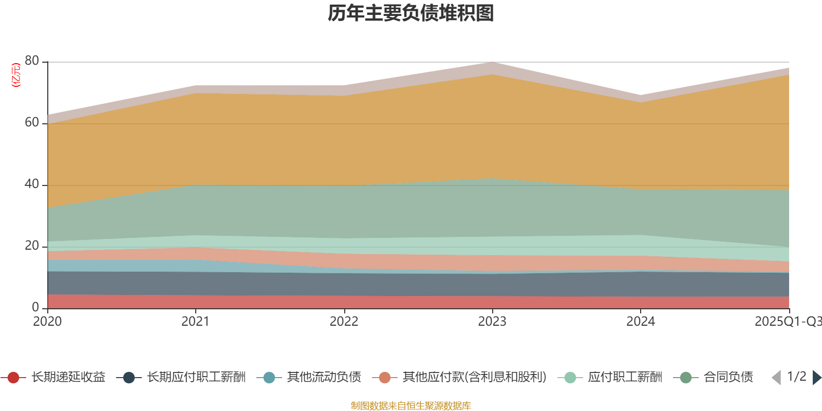 负债重大变化方面,截至2025年三季度末,公司应付票据及应付账款较上年末增加32.78%,占公司总资产比重上升3.13个百分点;合同负债较上年末增加24.39%,占公司总资产比重上升1.11个百分点;应付职工薪酬较上年末减少30.83%,占公司总资产比重下降1.08个百分点;其他应付款(含利息和股利)较上年末减少25.95%,占公司总资产比重下降0.64个百分点。