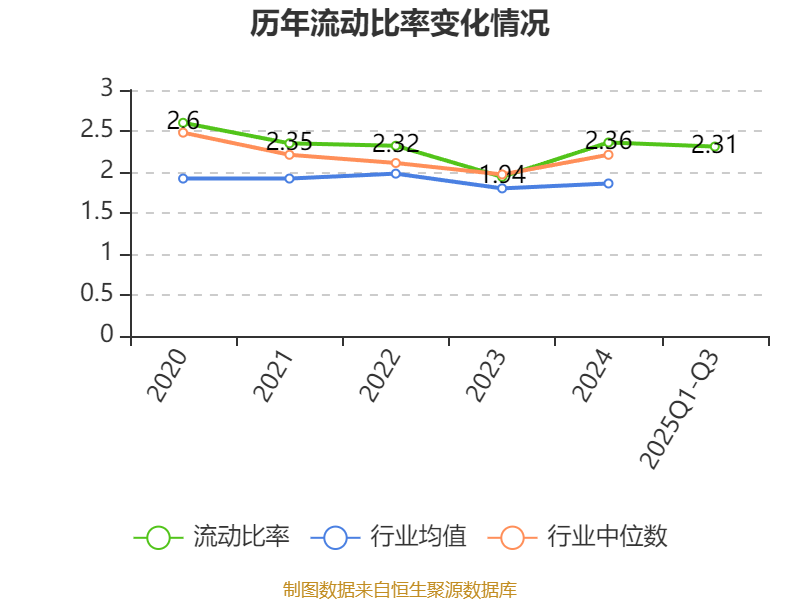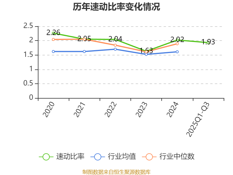 2025年前三季度,公司流动比率为2.31,速动比率为1.93。