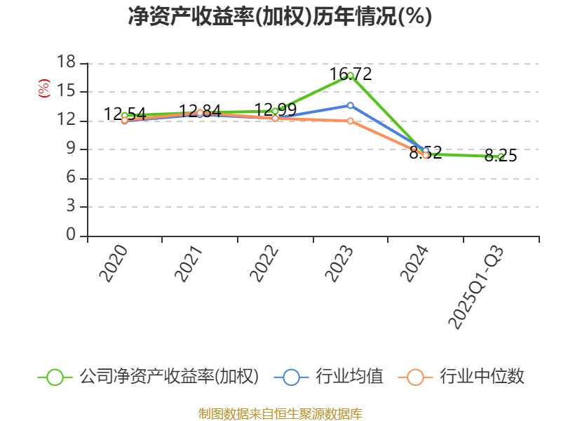 盈利能力方面, 2025年前三季度公司加权平均净资产收益率为8.25%,同比上升1.93个百分点。公司2025年前三季度投入资本回报率为7.54%,较上年同期上升1.54个百分点。