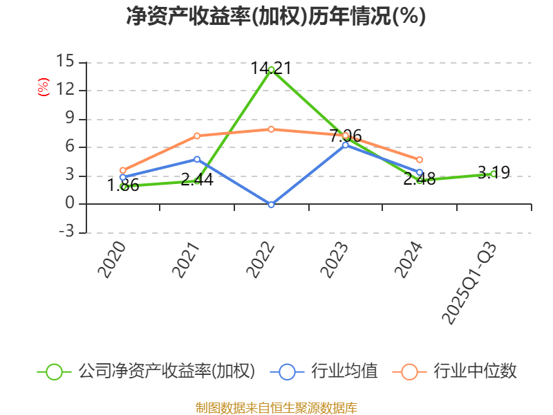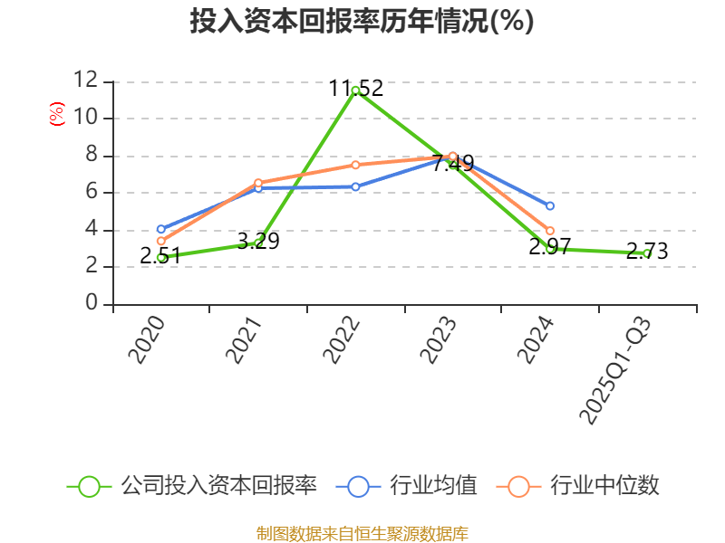 盈利能力方面, 2025年前三季度公司加权平均净资产收益率为3.19%,同比上升0.26个百分点。公司2025年前三季度投入资本回报率为2.73%,较上年同期上升0.04个百分点。
