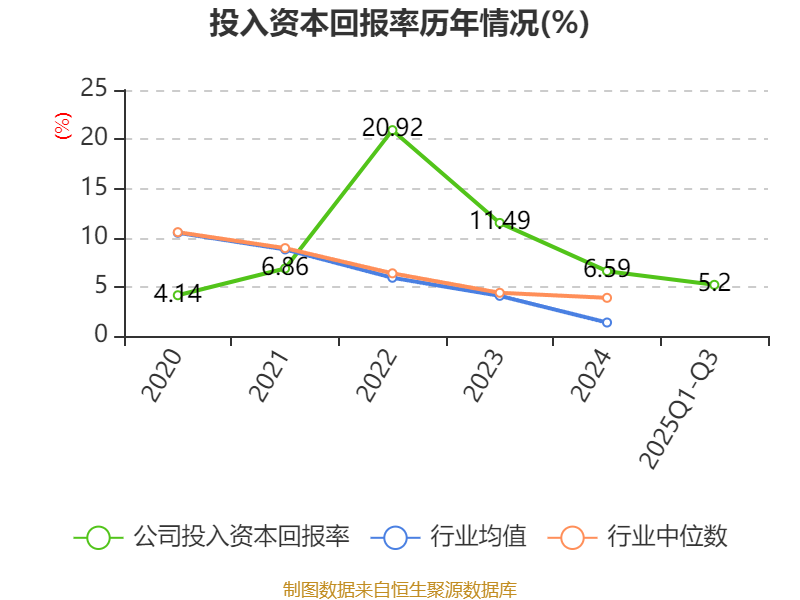 盈利能力方面, 2025年前三季度公司加权平均净资产收益率为6.11%,同比上升0.76个百分点。公司2025年前三季度投入资本回报率为5.2%,较上年同期上升1.03个百分点。
