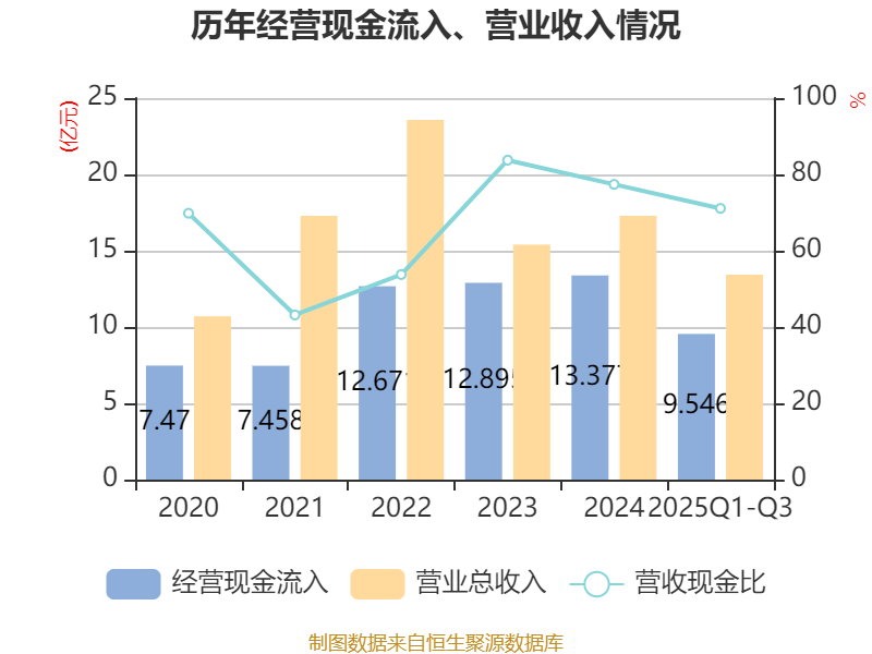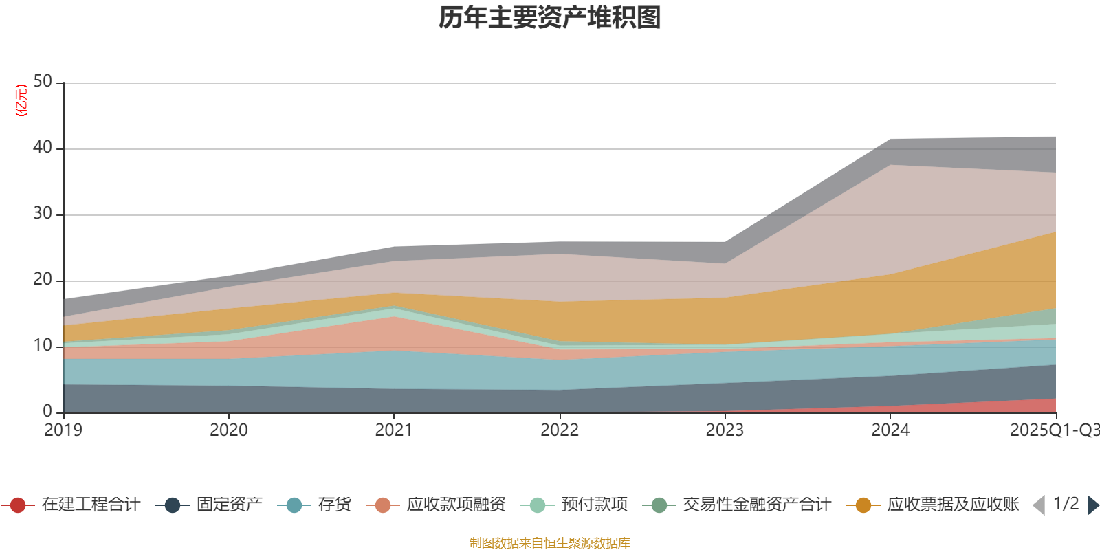 资产重大变化方面,截至2025年三季度末,公司货币资金较上年末减少45.76%,占公司总资产比重下降18.5个百分点;应收票据及应收账款较上年末增加28.41%,占公司总资产比重上升5.93个百分点;交易性金融资产合计占公司总资产的5.74%,上年末为0;在建工程合计较上年末增加114.61%,占公司总资产比重上升2.67个百分点。