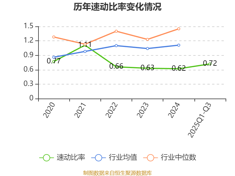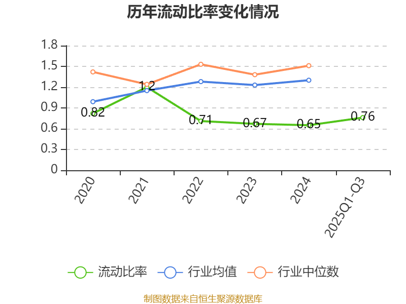 2025年前三季度,公司流动比率为0.76,速动比率为0.72。