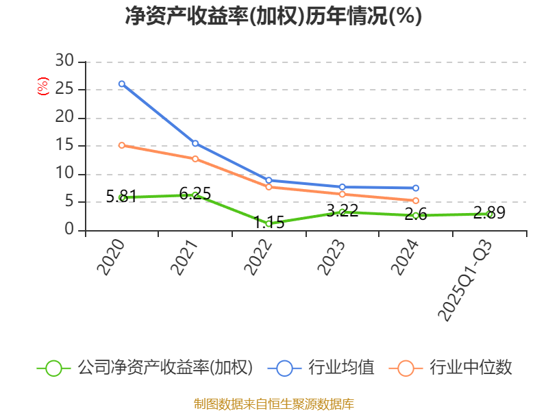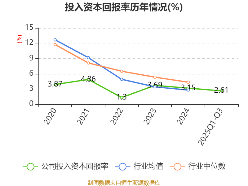 盈利能力方面, 2025年前三季度公司加权平均净资产收益率为2.89%,同比下降0.48个百分点。公司2025年前三季度投入资本回报率为2.61%,较上年同期下降0.4个百分点。
