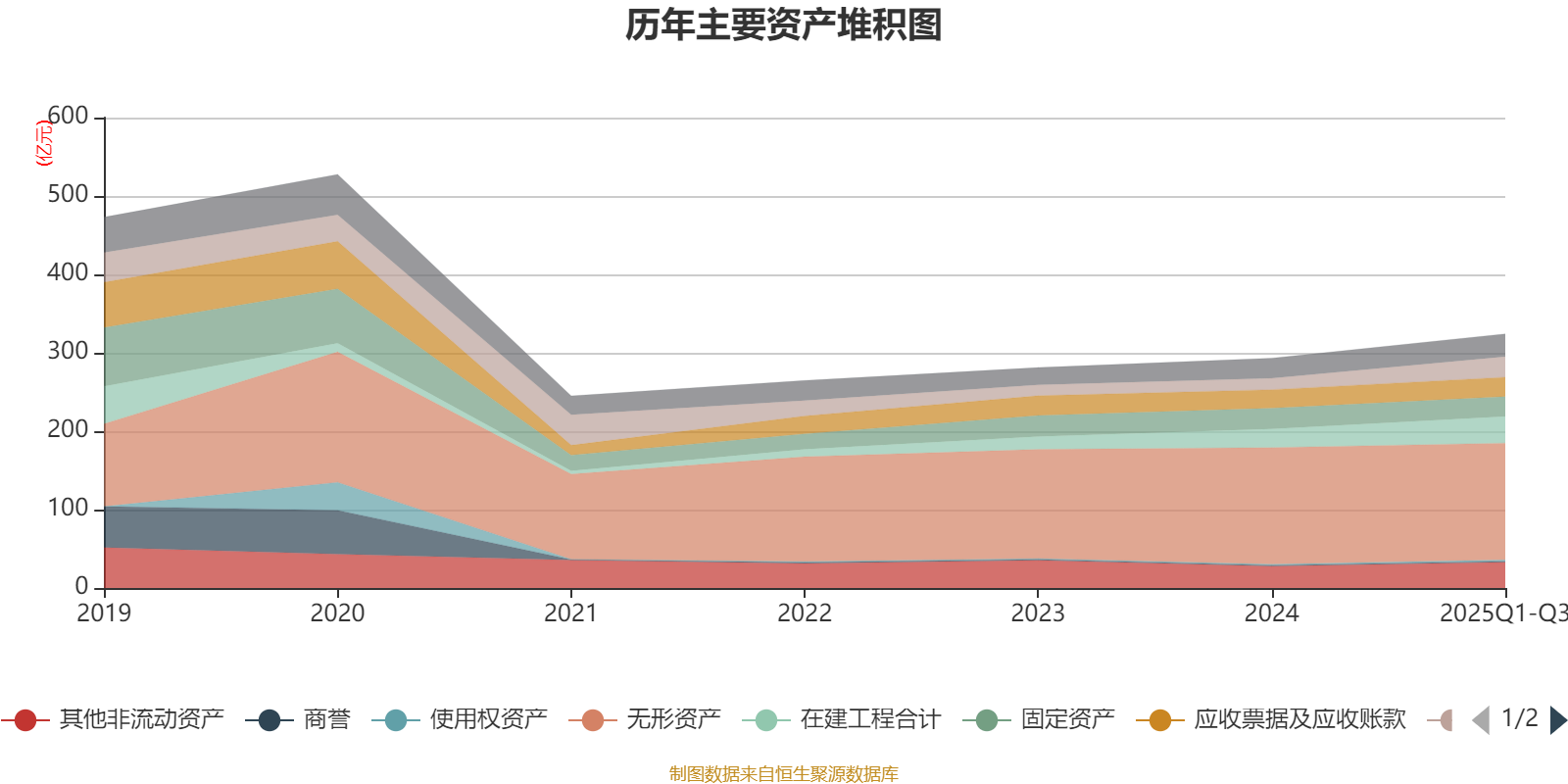 资产重大变化方面,截至2025年三季度末,公司无形资产较上年末增加0.14%,占公司总资产比重下降4.77个百分点;货币资金较上年末增加80.86%,占公司总资产比重上升3.13个百分点;在建工程合计较上年末增加42.78%,占公司总资产比重上升2.36个百分点;固定资产较上年末减少3.66%,占公司总资产比重下降1.16个百分点。