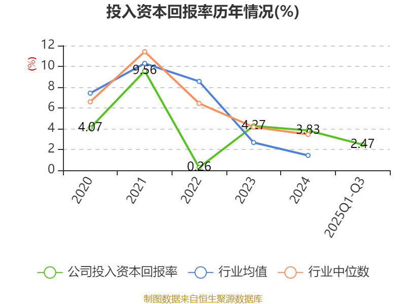 盈利能力方面, 2025年前三季度公司加权平均净资产收益率为4.92%,同比上升0.53个百分点。公司2025年前三季度投入资本回报率为2.47%,较上年同期下降0.28个百分点。