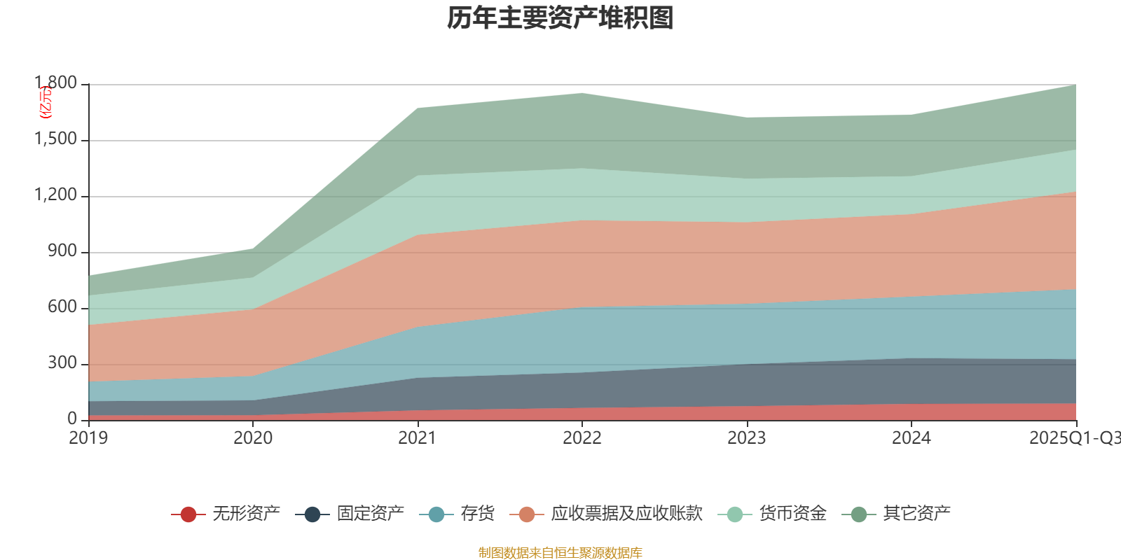 资产重大变化方面,截至2025年三季度末,公司应收票据及应收账款较上年末增加18.49%,占公司总资产比重上升2.12个百分点;固定资产较上年末减少3.14%,占公司总资产比重下降1.77个百分点;存货较上年末增加13.9%,占公司总资产比重上升0.74个百分点;长期应收款较上年末减少15.06%,占公司总资产比重下降0.66个百分点。