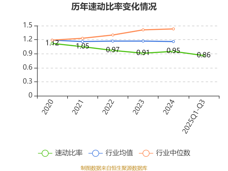 2025年前三季度,公司流动比率为1.22,速动比率为0.86。