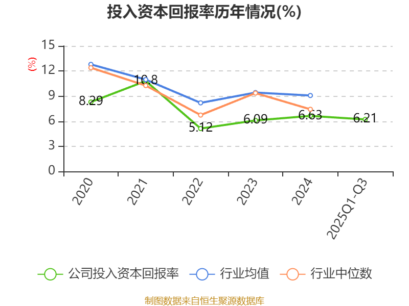 盈利能力方面, 2025年前三季度公司加权平均净资产收益率为9.92%,同比上升0.79个百分点。公司2025年前三季度投入资本回报率为6.21%,较上年同期上升0.58个百分点。