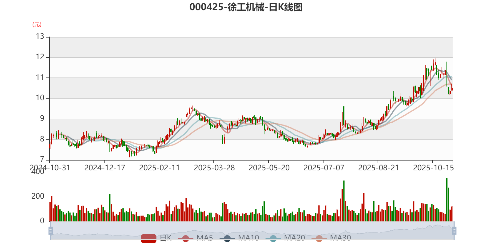 三季报显示,2025年三季度末的公司十大流通股东中,新进股东为天津茂信企业管理合伙企业(有限合伙)、淄博金石彭衡股权投资合伙企业(有限合伙)、徐州徐工金帆引领企业管理咨询合伙企业(有限合伙),取代了二季度末的国家制造业转型升级基金股份有限公司、中新融创资本管理有限公司-宁波梅山保税港区创绩资产管理合伙企业(有限合伙)、徐州工程机械集团有限公司。在具体持股比例上,江苏省国信集团有限公司、湖州盈灿投资合伙企业(有限合伙)、建信金融资产投资有限公司、中国证券金融股份有限公司持股有所上升,香港中央结算有限公司、华泰柏瑞沪深300交易型开放式指数证券投资基金、易方达沪深300交易型开放式指数发起式证券投资基金持股有所下降。