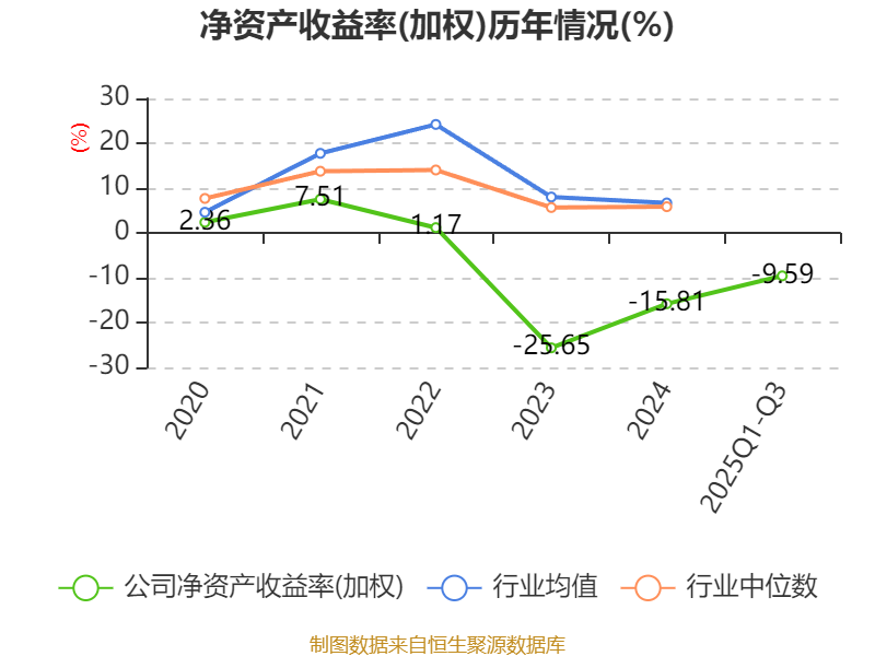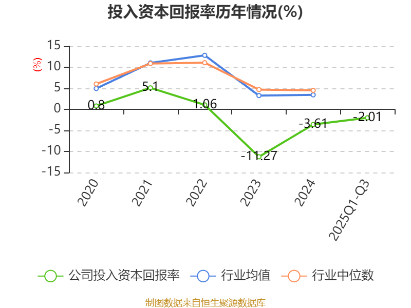 盈利能力方面, 2025年前三季度公司加权平均净资产收益率为-9.59%,同比下降0.9个百分点。公司2025年前三季度投入资本回报率为-2.01%,较上年同期下降0.24个百分点。