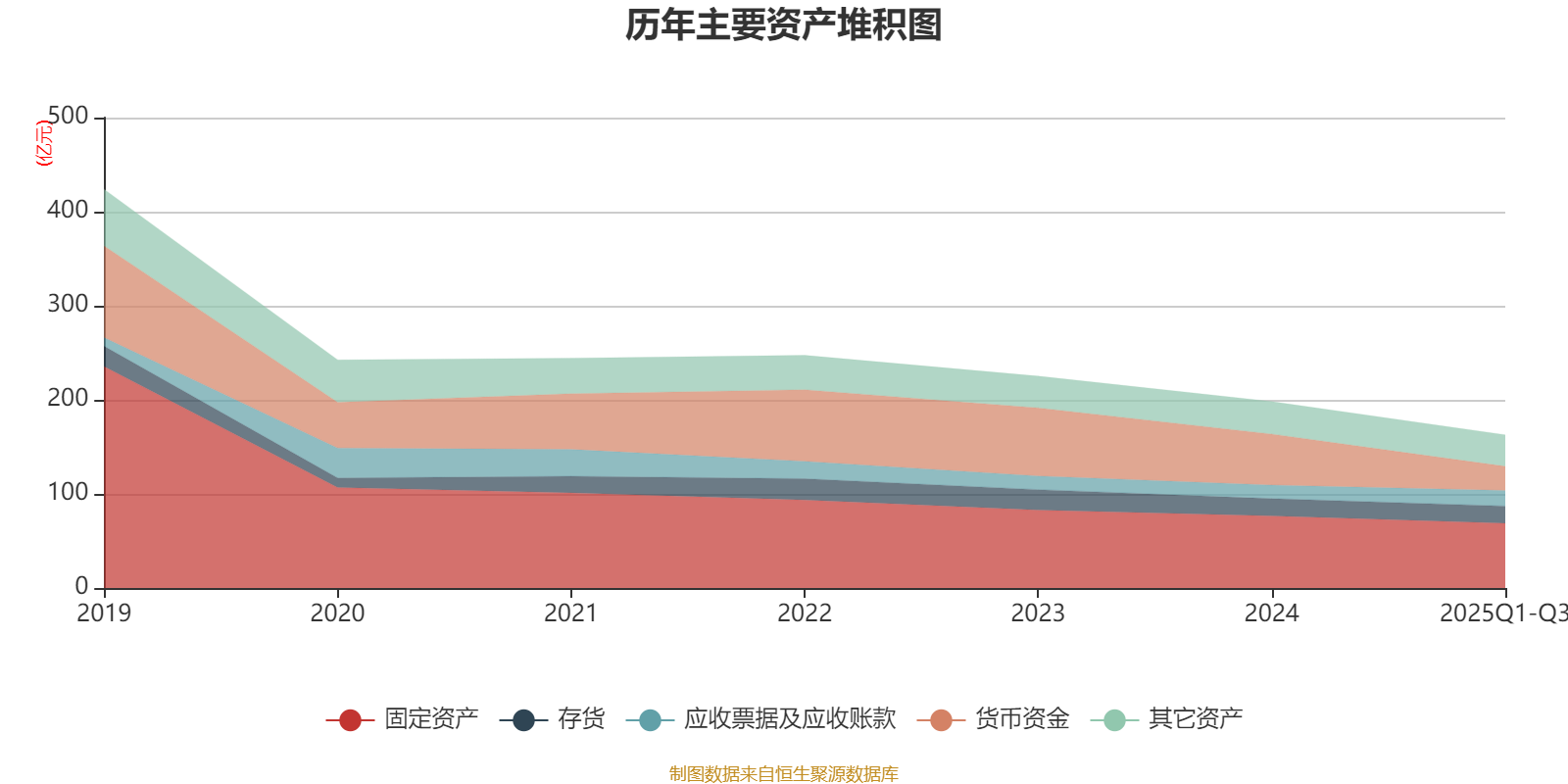 资产重大变化方面,截至2025年三季度末,公司货币资金较上年末减少52.61%,占公司总资产比重下降11.57个百分点;固定资产较上年末减少10.2%,占公司总资产比重上升3.61个百分点;应收票据及应收账款较上年末增加15.19%,占公司总资产比重上升2.91个百分点;存货较上年末减少0.83%,占公司总资产比重上升1.93个百分点。