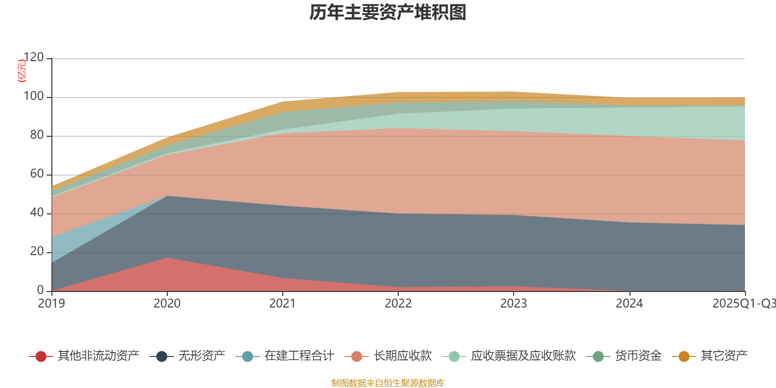 资产重大变化方面,截至2025年三季度末,公司应收票据及应收账款较上年末增加19.53%,占公司总资产比重上升2.85个百分点;无形资产较上年末减少3.73%,占公司总资产比重下降1.37个百分点;长期应收款较上年末减少2.18%,占公司总资产比重下降1.04个百分点;货币资金较上年末减少48.69%,占公司总资产比重下降0.53个百分点。