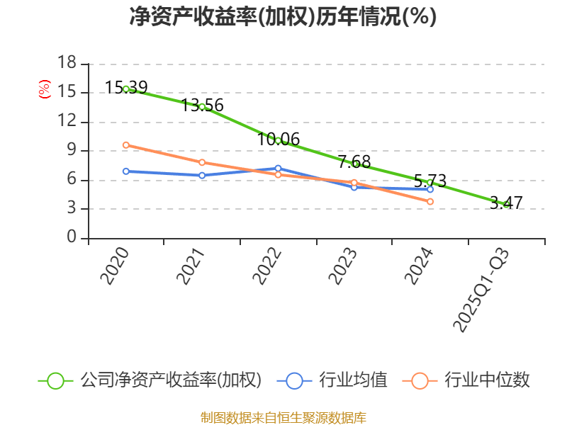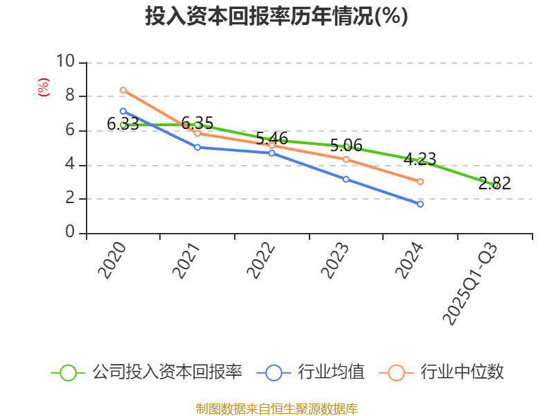 盈利能力方面, 2025年前三季度公司加权平均净资产收益率为3.47%,同比下降1.86个百分点。公司2025年前三季度投入资本回报率为2.82%,较上年同期下降0.71个百分点。