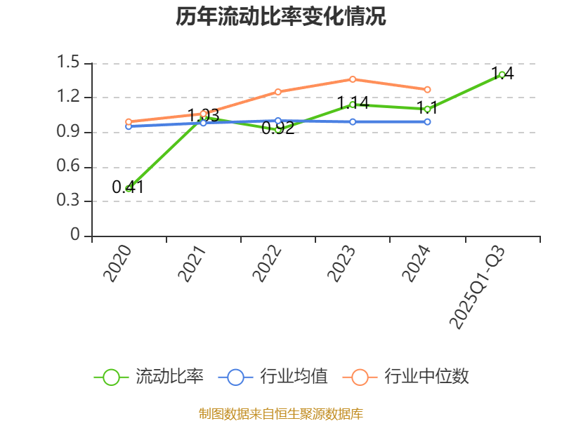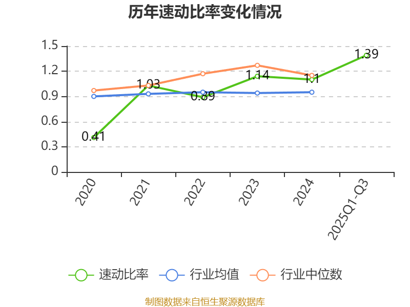 2025年前三季度,公司流动比率为1.4,速动比率为1.39。