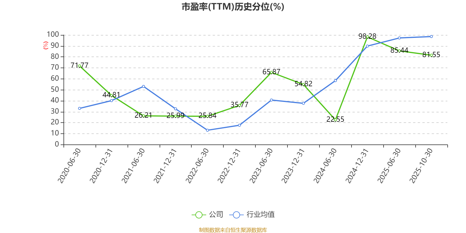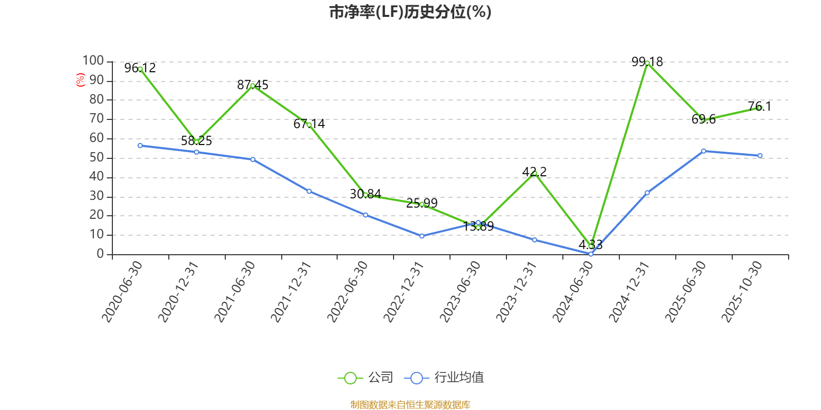 市盈率、市净率为负时,不显示当期分位数,会导致折线图中断。