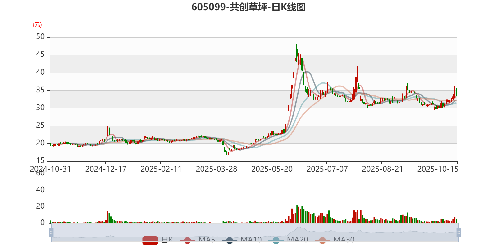 以10月30日收盘价计算,共创草坪目前市盈率(TTM)约为21.28倍,市净率(LF)约4.48倍,市销率(TTM)约4.25倍。
