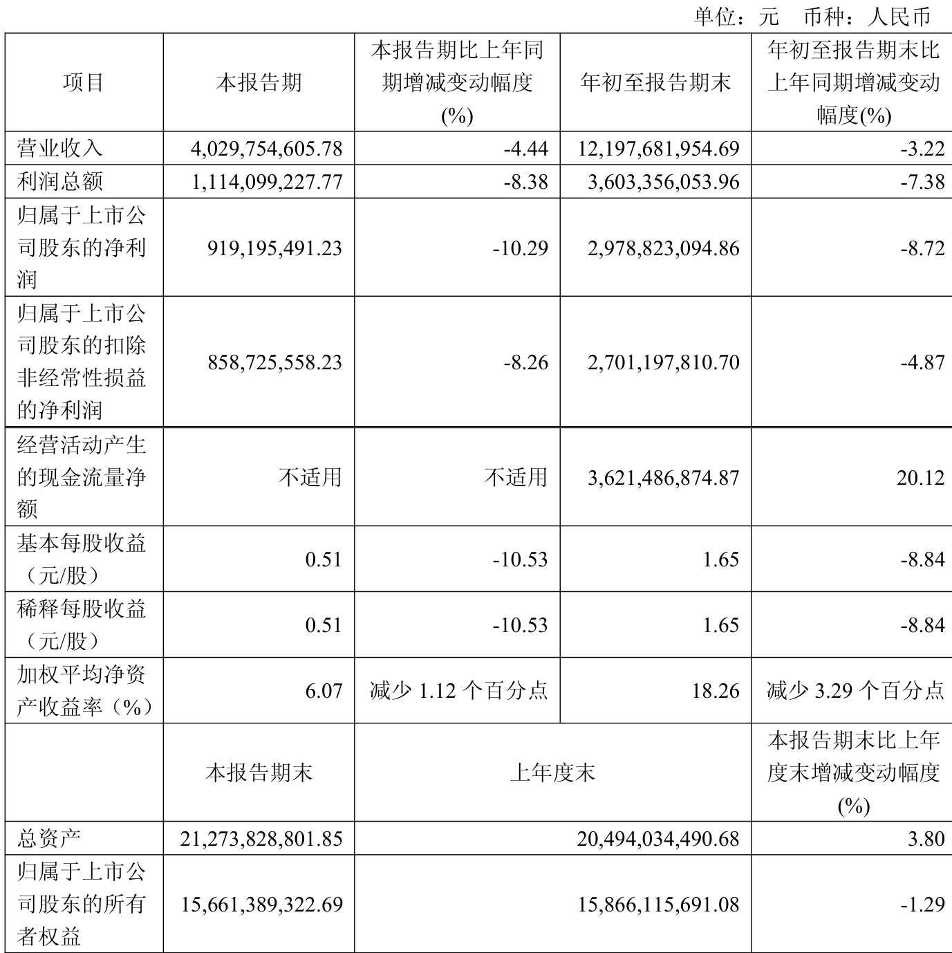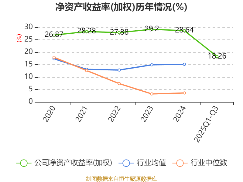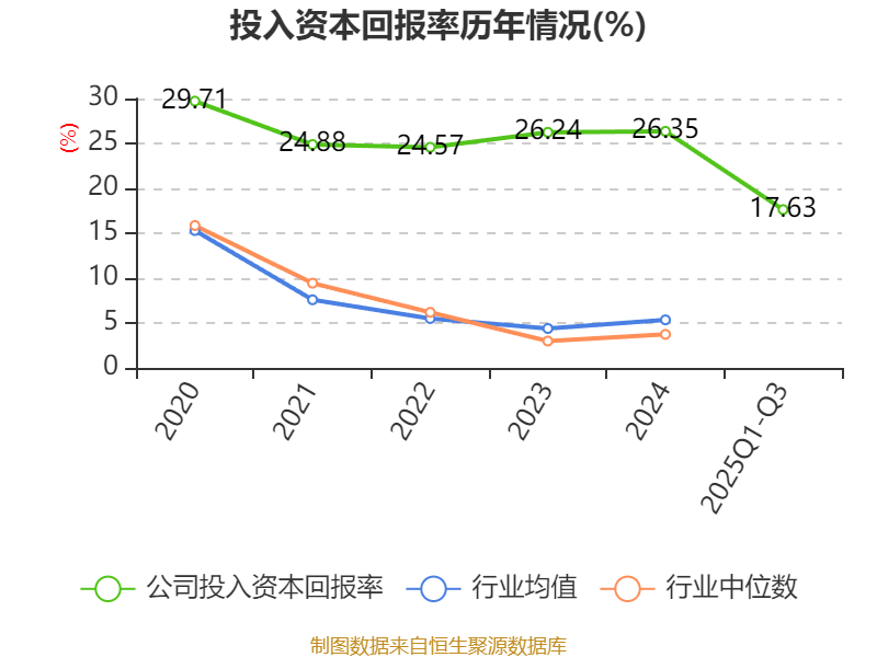 盈利能力方面, 2025年前三季度公司加权平均净资产收益率为18.26%,同比下降3.29个百分点。公司2025年前三季度投入资本回报率为17.63%,较上年同期下降3.15个百分点。