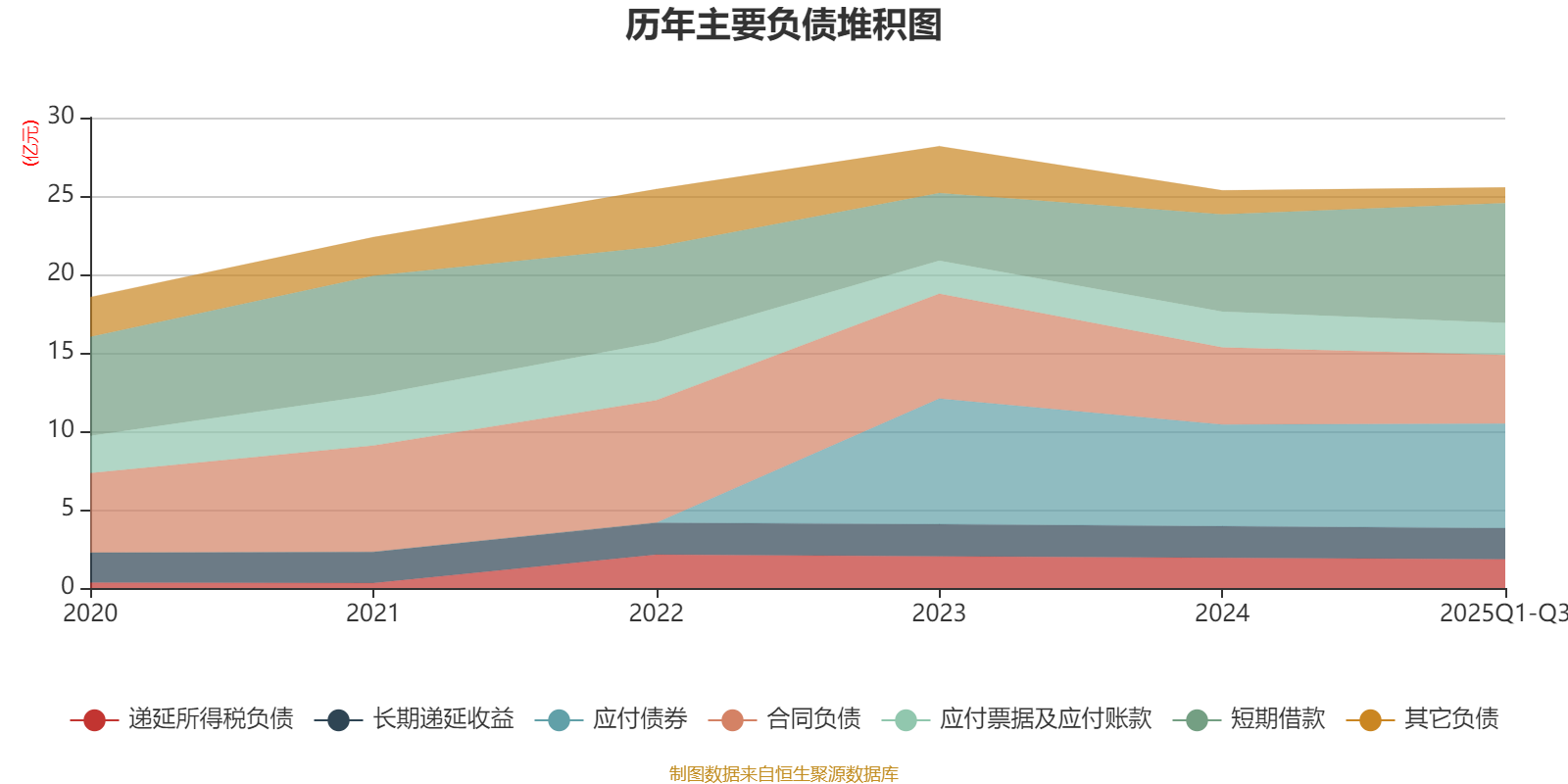负债重大变化方面,截至2025年三季度末,公司短期借款较上年末增加23.36%,占公司总资产比重上升3.02个百分点;应付债券较上年末增加2.66%,占公司总资产比重上升0.88个百分点;合同负债较上年末减少10.97%,占公司总资产比重下降0.47个百分点;应付职工薪酬较上年末减少70.65%,占公司总资产比重下降0.36个百分点。