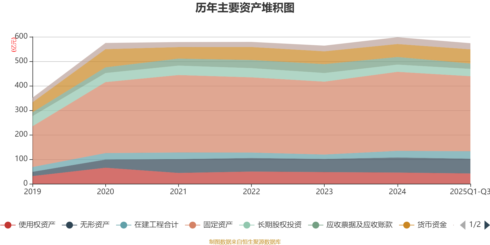 资产重大变化方面,截至2025年三季度末,公司应收票据及应收账款较上年末减少29.36%,占公司总资产比重下降1.36个百分点;货币资金较上年末增加9.09%,占公司总资产比重上升1.21个百分点;在建工程合计较上年末增加12.78%,占公司总资产比重上升0.8个百分点;固定资产较上年末减少5.06%,占公司总资产比重下降0.54个百分点。