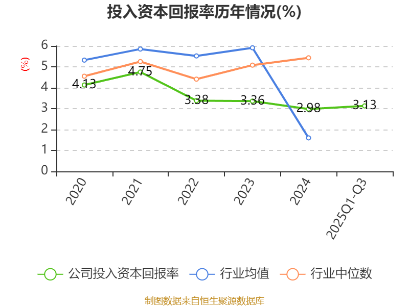 盈利能力方面, 2025年前三季度公司加权平均净资产收益率为3.22%,同比上升0.86个百分点。公司2025年前三季度投入资本回报率为3.13%,较上年同期上升0.76个百分点。