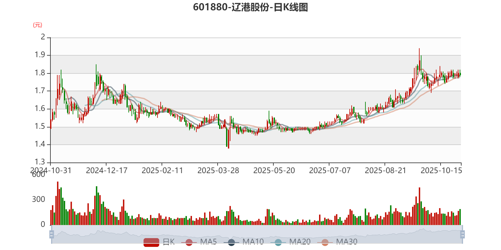以10月30日收盘价计算,辽港股份目前市盈率(TTM)约为28.15倍,市净率(LF)约1.04倍,市销率(TTM)约3.66倍。
