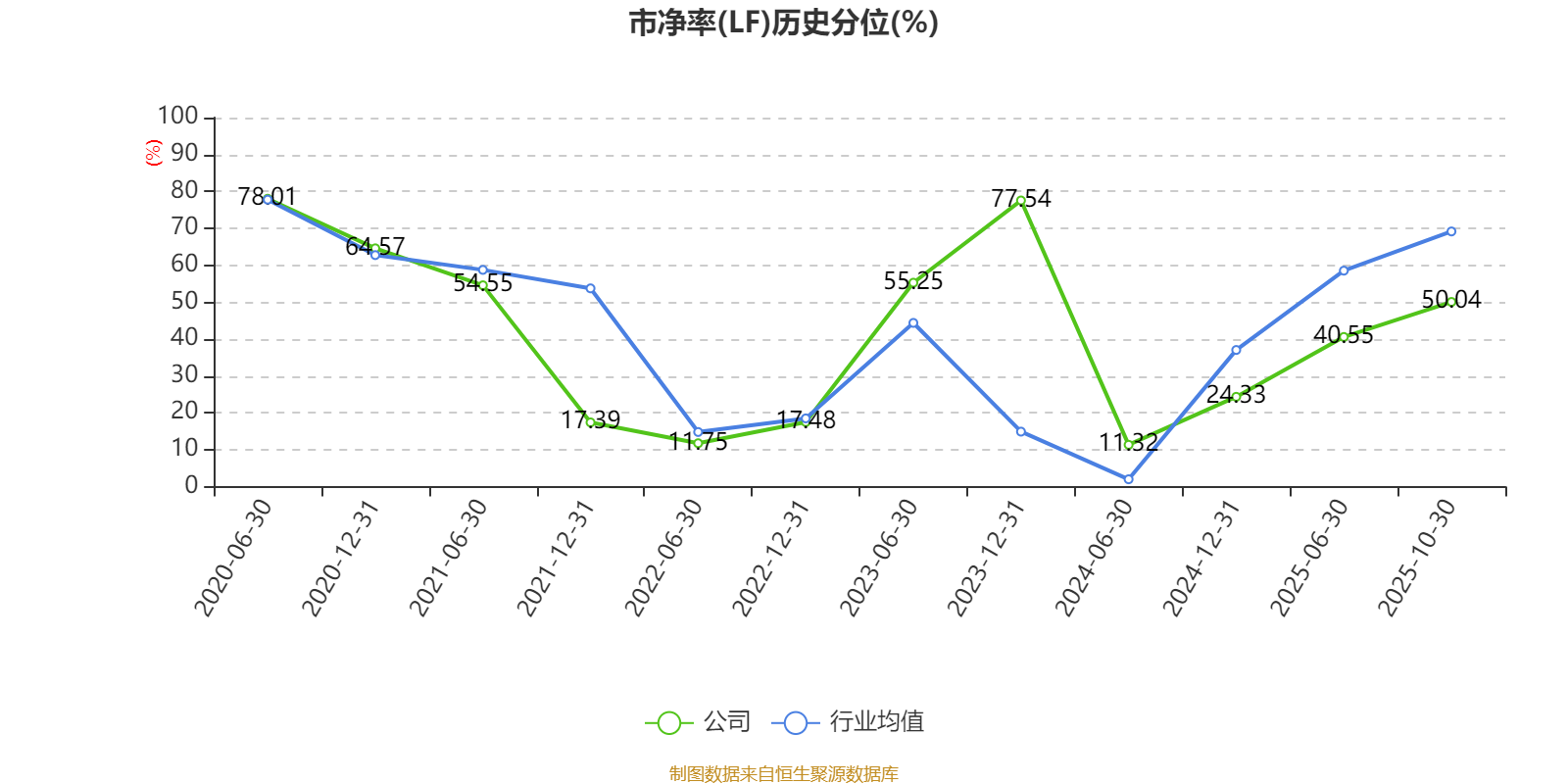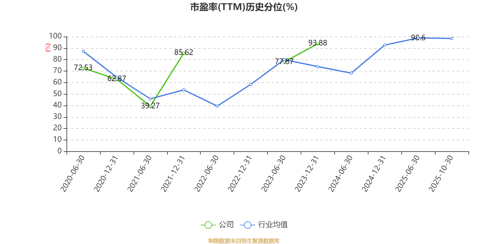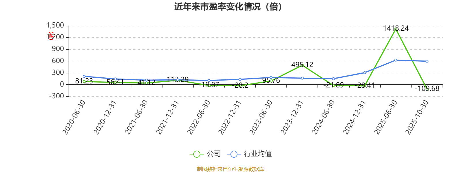 市盈率、市净率为负时,不显示当期分位数,会导致折线图中断。