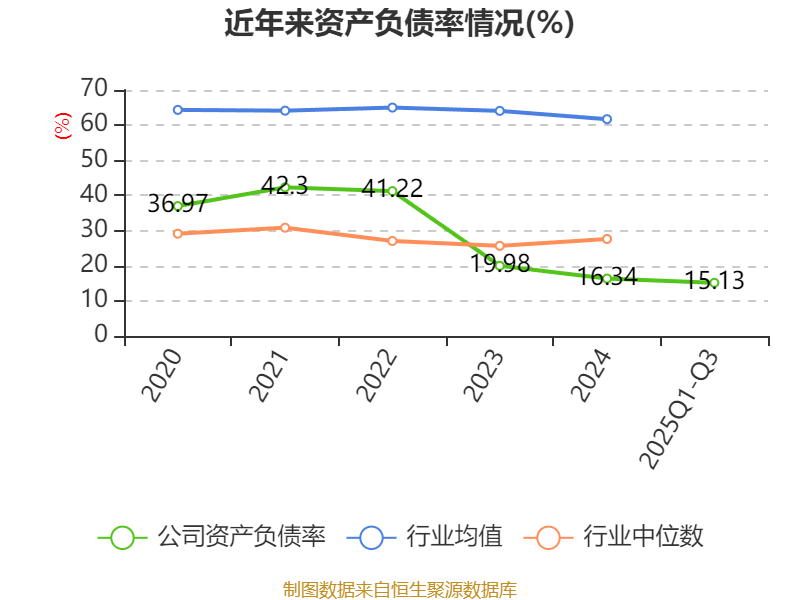 2025年前三季度,公司流动比率为5.05,速动比率为4.64。