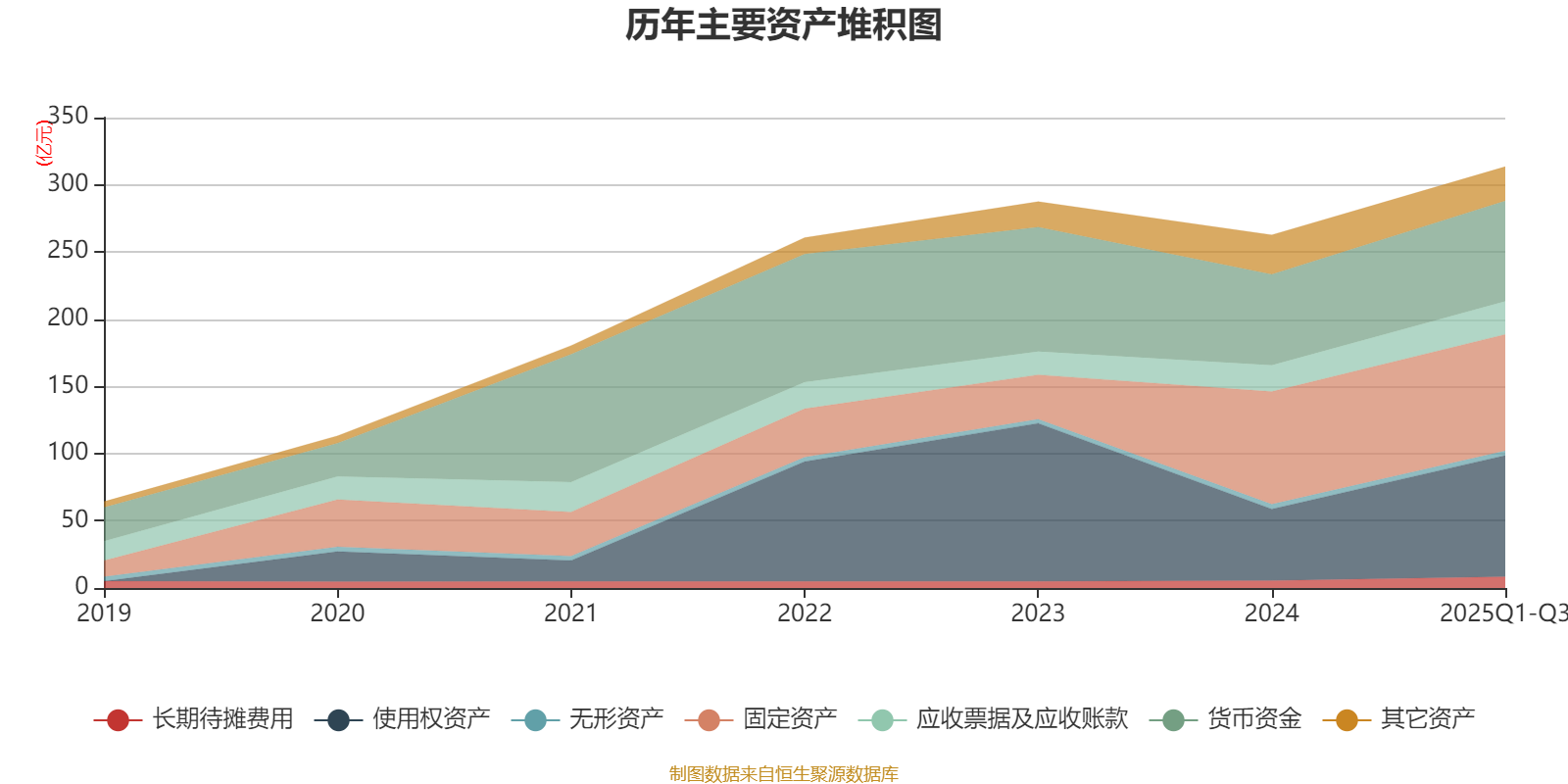 资产重大变化方面,截至2025年三季度末,公司使用权资产较上年末增加69.77%,占公司总资产比重上升8.56个百分点;固定资产较上年末增加3.35%,占公司总资产比重下降4.27个百分点;货币资金较上年末增加10.8%,占公司总资产比重下降1.83个百分点;其他流动资产较上年末减少84.74%,占公司总资产比重下降0.94个百分点。