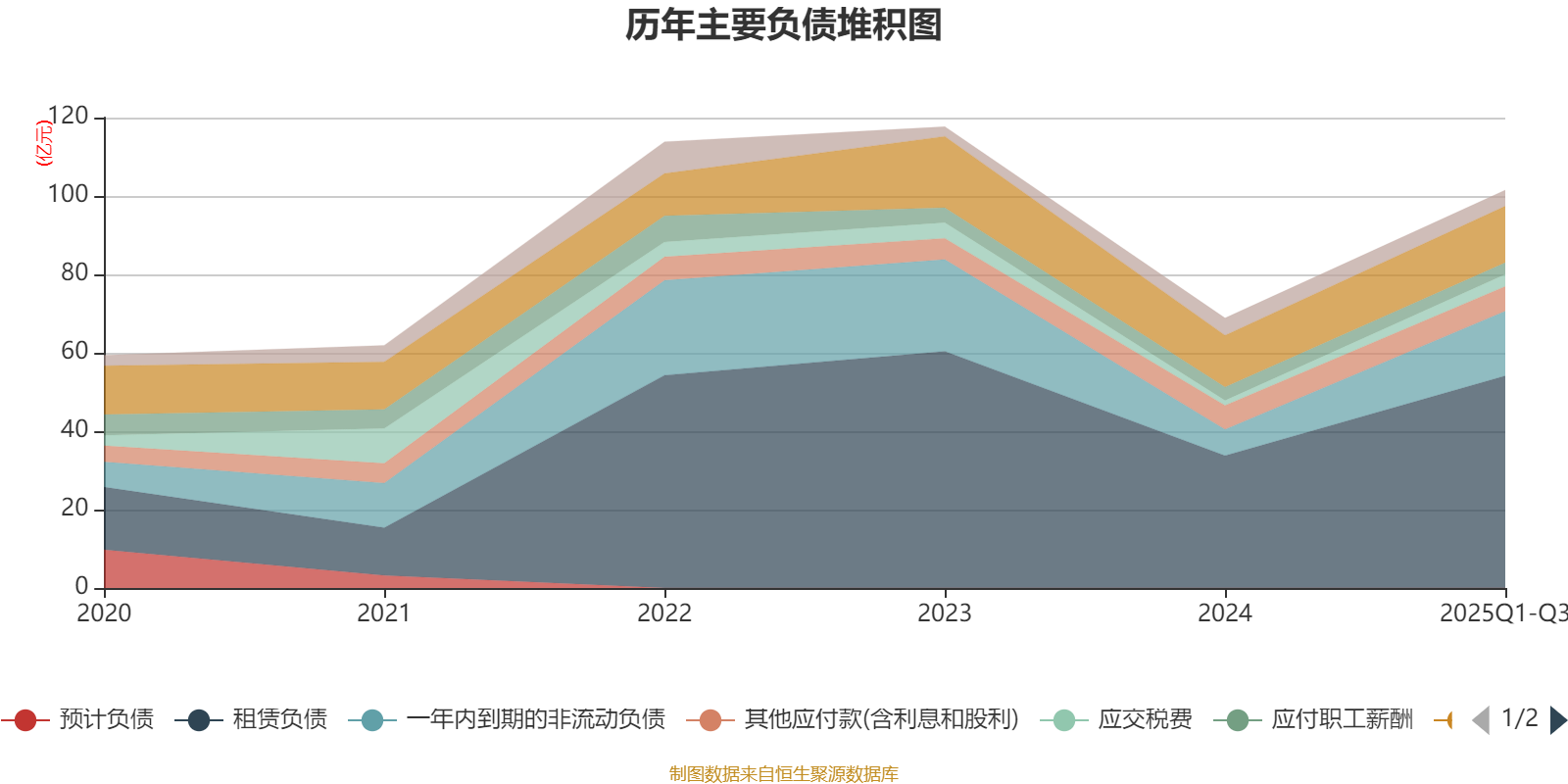 负债重大变化方面,截至2025年三季度末,公司租赁负债较上年末增加60.34%,占公司总资产比重上升4.42个百分点;一年内到期的非流动负债较上年末增加146.45%,占公司总资产比重上升2.72个百分点;应交税费较上年末增加144.68%,占公司总资产比重上升0.5个百分点;应付票据及应付账款较上年末增加9.3%,占公司总资产比重下降0.42个百分点。
