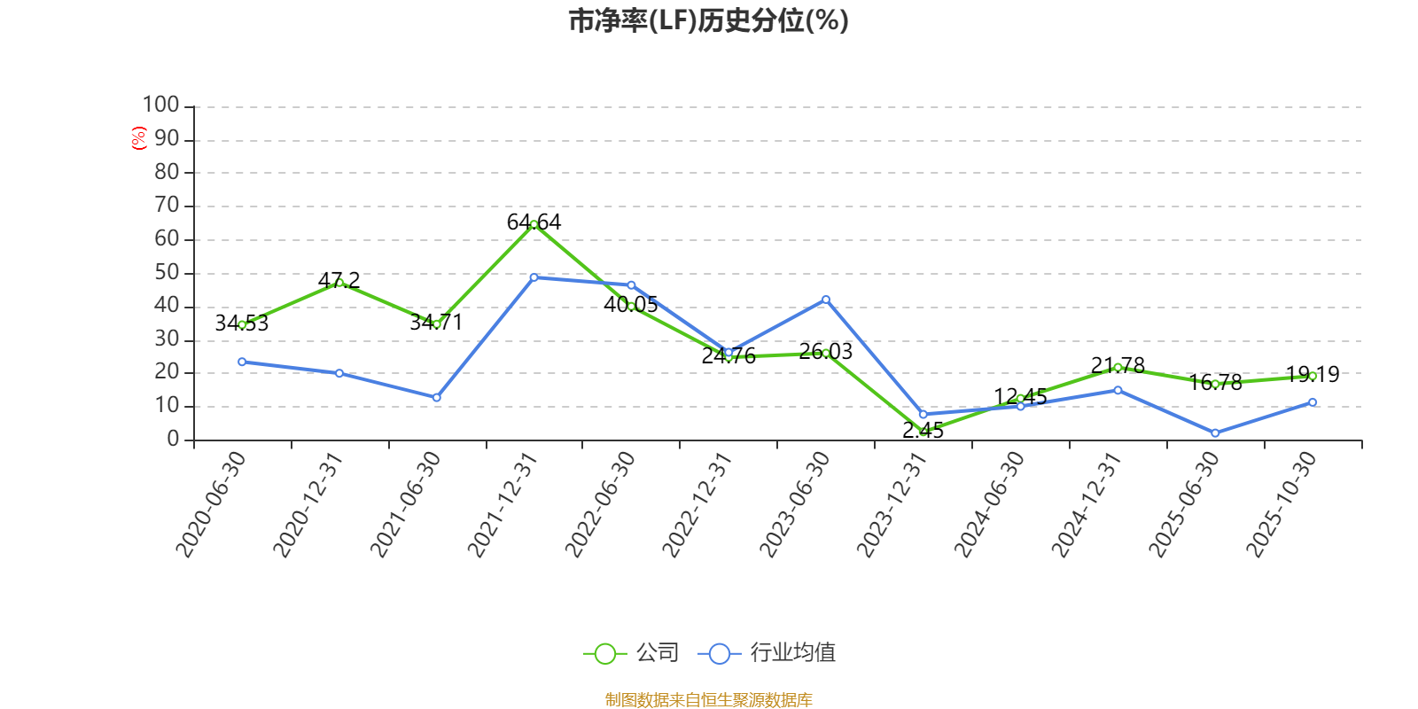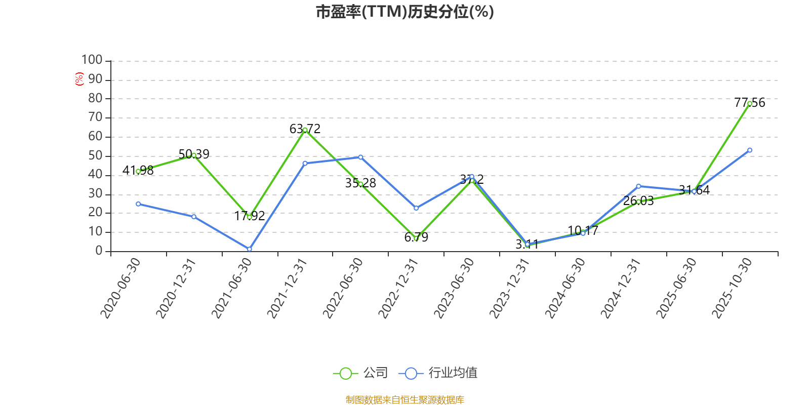 市盈率、市净率为负时,不显示当期分位数,会导致折线图中断。