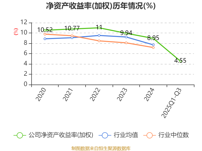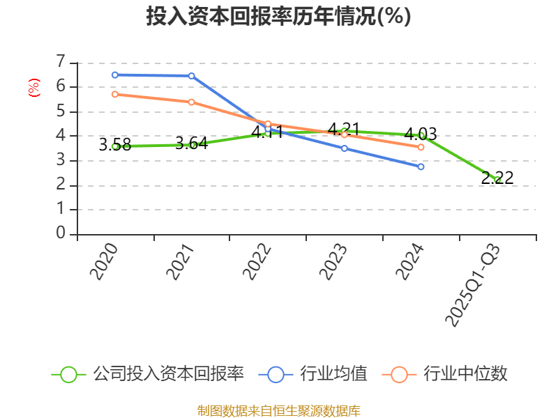 盈利能力方面, 2025年前三季度公司加权平均净资产收益率为4.55%,同比下降2.47个百分点。公司2025年前三季度投入资本回报率为2.22%,较上年同期下降0.58个百分点。