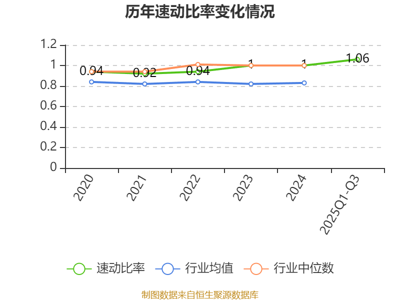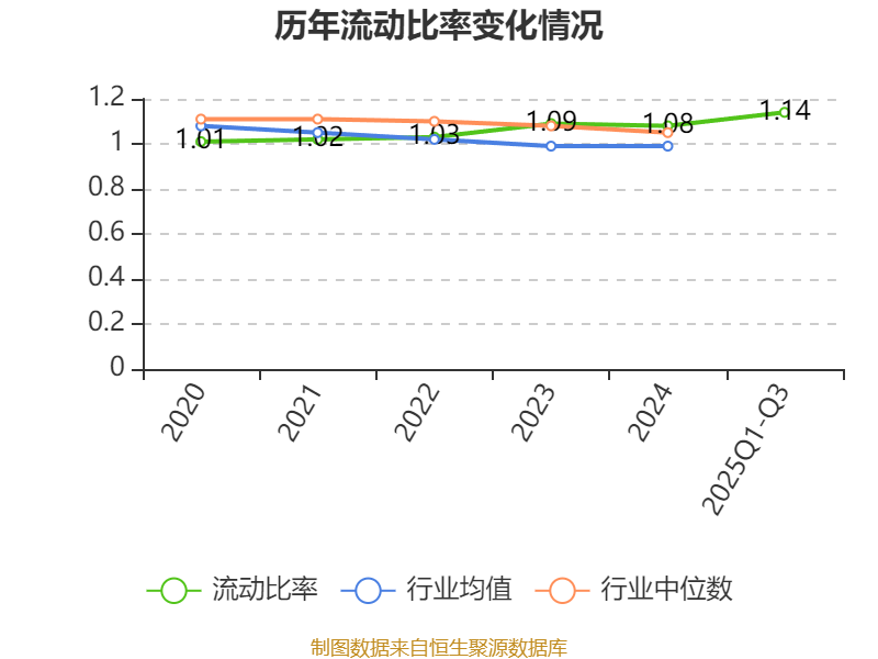 2025年前三季度,公司流动比率为1.14,速动比率为1.06。