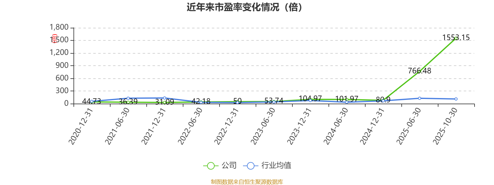 以10月30日收盘价计算,长鸿高科目前市盈率(TTM)约为1553.15倍,市净率(LF)约5.94倍,市销率(TTM)约2.94倍。