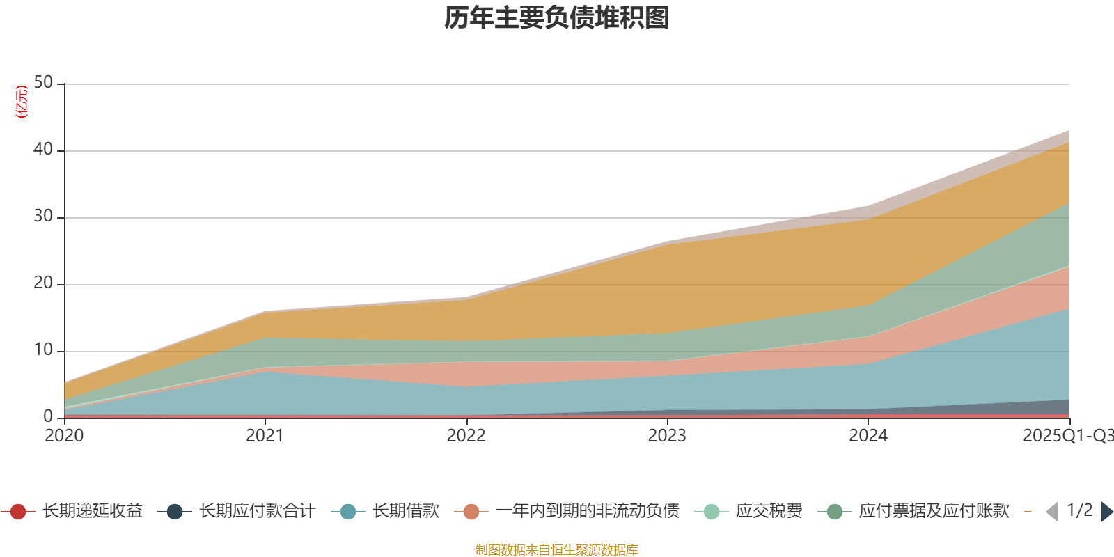 负债重大变化方面,截至2025年三季度末,公司短期借款较上年末减少29.29%,占公司总资产比重下降10.56个百分点;长期借款较上年末增加101.21%,占公司总资产比重上升8.4个百分点;应付票据及应付账款较上年末增加102.48%,占公司总资产比重上升5.83个百分点;一年内到期的非流动负债较上年末增加54.24%,占公司总资产比重上升2.02个百分点。