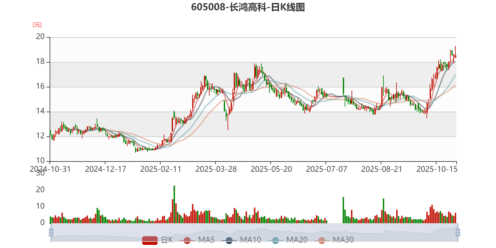 中证智能财讯长鸿高科(605008)10月31日披露2025年第三季度报告。前三季度公司实现营业总收入29.65亿元,同比增长17.08%;归母净利润1605.99万元,同比下降84.34%;扣非净利润276.49万元,同比下降96.28%;经营活动产生的现金流量净额为-7568.19万元,上年同期为1.21亿元;报告期内,长鸿高科基本每股收益为0.02元,加权平均净资产收益率为0.80%。
